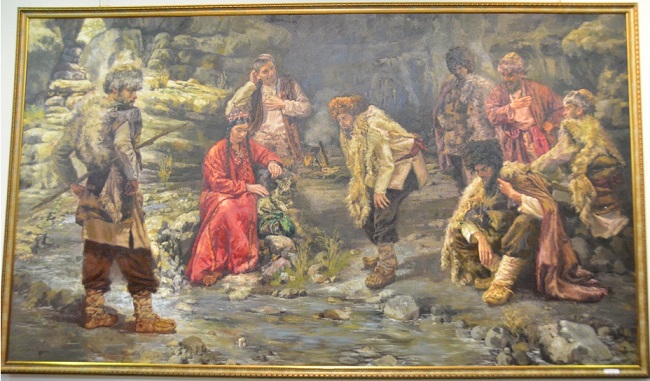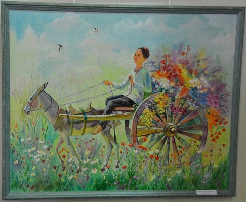 Невозможно равнодушно пройти мимо картины «Счастье» выпускницы 2017 года Байлиевой Лачин. Обычная вроде сельская картина – едет мальчик на арбе. Характерный для нашего края сюжет. Но он везет… цветы! Море полевых цветов. И все поле в цветах. И небо такое высокое, лазоревое, с парящими птицами. Взгляд, скользнув по картине, возвращается с нежной симпатией обратно, к образу мальчика. Чистотой и вдохновением наполняется душа, глядя на улыбающееся лицо. От картины веет ароматом родной земли, покоем. Она завораживает воображение и отзывается теплыми нотками в сердце, напоминая детство. Восхитительна цветовая композиция. Картина очень метафорична: счастье – жить под мирным небом, на родной земле, в окружении красоты. И знать, что путь твой усеян цветами!