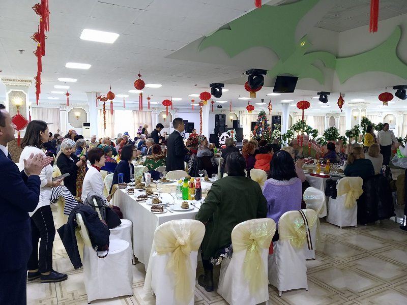 Сегодня в кафе — ресторане «Бягуль» общественная организация «YENME», известная своими благотворительными акциями, совместно с Посольством КНР в Туркменистане устроили новогодний «утренник» для людей пожилого возраста. Собравшихся тепло и сердечно с наступающим Новым годом поздравили Гуля Танрыбердыевна Чореклиева – руководитель организации и госпожа Чжао Ли – советник по торгово — экономическим вопросам Посольства, которая преподнесла сладкие подарки из Китая, символизирующие счастье. Сотрудникам Посольства были подарены экологические сумки из бязевой ткани, сшитые и украшенные вышивкой, девочками из Центра профессионального развития для молодежи с ограниченными возможностями. Работники кафе накрыли для гостей столы, угостили вкусным обедом.