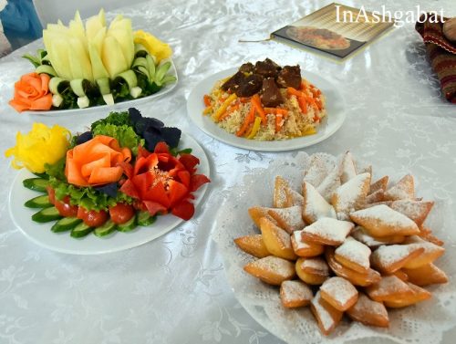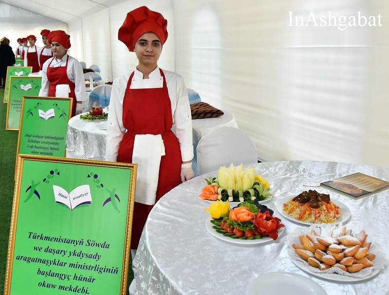 Студенткам — конкурсанткам по специальности «Поварское дело» было дано задание приготовить туркменские блюда – плов и пишме. Судейская группа оценивала в этом конкурсе оформление блюд, вкусовые качества, умение накрывать на стол, а также выполнения всей техники безопасности, соблюдения чистоты на рабочем месте, соответствие специальной одежды повара. Таким образом, студентка школы начального профессионального образования Министерства торговли и внешнеэкономических связей Туркменистана Гульрух Гурбанмухаммедова заняла 1-е место, студентка школы начального профессионального образования №5 геоктепинского этрапа ахалского велаята Солтанджемал Таганова заняла 2-е место, а студентка школы начального профессионального образования №5 хякимлика гёроглынского этрапа дашогузкого велаята Айлар Назарова удостоилась 3-го места.
