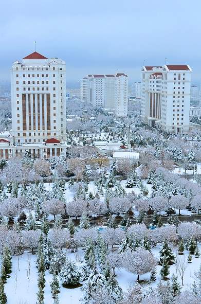 «Türkmenistan — Bitaraplygyň mekany» ýylynyň ak gary berekediň buşlugydyr. Gyşyň nemi ýeriň emi hasaplanýar. Ak dona bürenen Aşgabadyň gözelligi bolsa, «ak merjenleriň» lowurdysyna goşulyp, gözüňi egleýär, göwnüňi göterýär.
