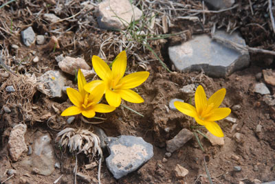 …Среди горной степи ранним утром раздавались звонкие голоса полевого жаворонка. Словно серые комочки, они с песней поднимались с поникшей прошлогодней травы, задерживались в небе, часто взмахивая крылышками. Спустившись на землю, птахи смущенно умолкали. Горные степи начинали «просыпаться», обращенные к утру и весне. Солнце быстро согревало всё пространство между одиноко стоящими стволами старой арчи и крупными колючими «ежами» кустарника эспарцета рогообразного. На узкой горной тропинке к заснеженной вершине горы Душакэрекдаг в мартовский день чудесным образом на глаза попались коротенькие стебельки с лиловыми цветками, едва заметные среди серых кустиков полыни. С запада медленно плыли белые облака, словно увлекая за собой тонкий цветочный аромат растения. Это был редкий шафран Михельсона, встретить который — большая удача для ботаника.