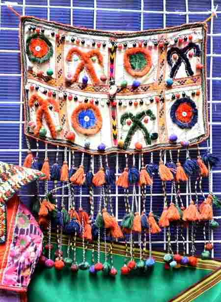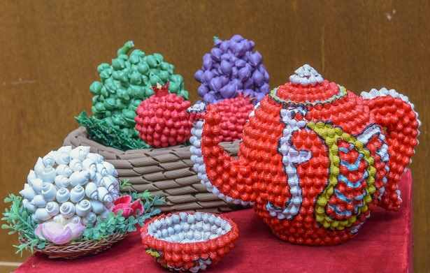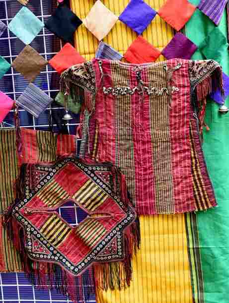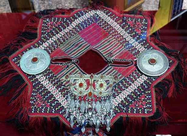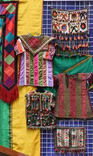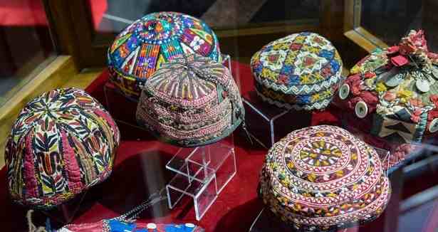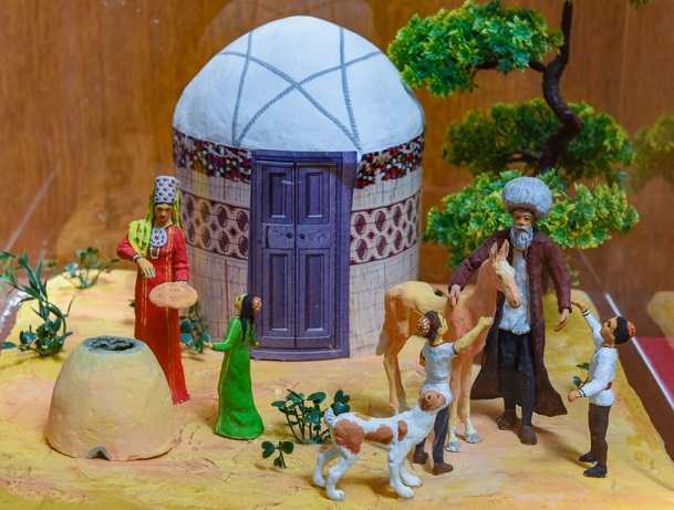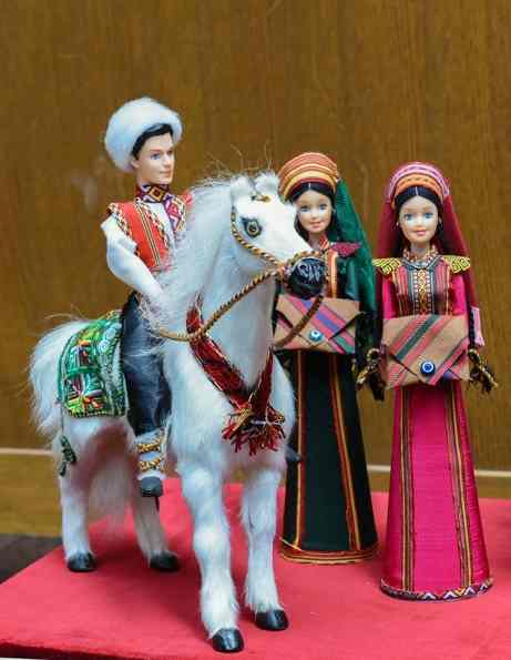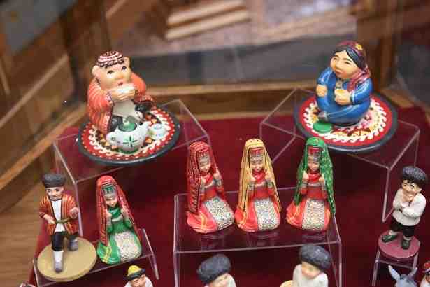 Здесь экспонируются красочная туркменская национальная детская одежда и старинные ювелирные амулеты, а также сувениры из коллекции подарков Президенту от маленьких туркменистанцев – это рисунки и поделки.