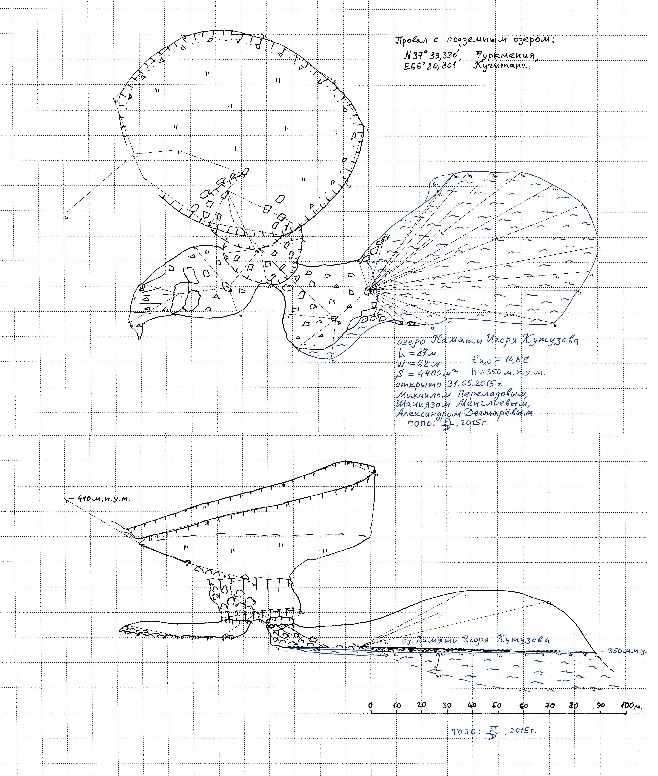 Этот провал в настоящее время также опасен для обследования. На поверхности, вокруг дыры диаметром до 8 м., были кольцевые глубокие трещины до 1м шириной. Стены провала у устья «снабжены» нависшими глыбами горных пород, которые, как говорится, «висят» на волоске. Несмотря на риск обвала, туда уже недавно спускались группы исследователей. Спуск настолько сложен, что пришлось использовать альпинистское снаряжение. Этот провал с подземным озером хорошо известен спелеологам уже минимум 40 лет. Наблюдения за биологией уникальной популяции слепых рыб, внесённых в Красную книгу Туркменистана, проводится уже несколько десятилетий. Водолазное обследование озера, проведённое в 1987 году спелеологами из России М.Переладовым и Е.Войдаковым показало, что глубина этого подземного озера составляет более 60 м.