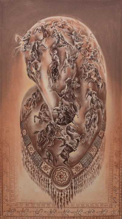 Talyp ýaşlaryň sungat eserlerinde welosport, milli göreş, ýeňil we agyr atletika, konkur, küşt, suwda ýüzmek, tennis, futbol, basketbol, woleýbol, buzuň üstünde typmak, atçylyk ýaly sportuň dürli görnüşleri, şeýle hem milli oýunlary dürli çeperçilik akymlary arkaly suratlandyrylýar. Atçylyk sportunyň dürli görnüşleriniň aýratynlygy ýaş suratkeşleri aýratyn hem özüne çekýär. Öwliýaguly Berkeliýewiň “Aýlaw”, Döwletgeldi Kulyýewiň “Bedew batly Watanym”, Bagtyýar Begsähedowyň “Konkur”,Ogulgül Meredowanyň “Konkur” nakgaşlyk eserleri, Rejep Garaýewiň “Atly sport”, Güljahan Garaýewanyň “Owlak gapdy” grafiki işleri, Salyh Saparmämmedowyň “Çapyksuwar” atly heýkelinde,  Jemal Goçgulyýewanyň “Çapyksuwarlar”, Aýgözel Babaýewanyň “Konkur” dizaýn taslamalarynda adamyň ata doly düşünýändigini we üznüksiz baglanyşyklydygyny, çapyksuwaryň bedew bilen bilelikde hereket etmegi netijesinde gözel hereketleriniň sazlaşygy emele gelýändigi görkezilýär.