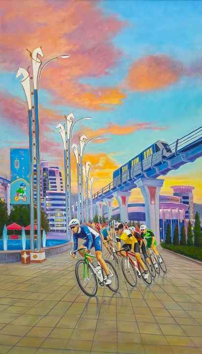 Bedenterbiýe-sagaldyş hereketini ösdürmek, jemgyýetiň ekologiýa medeniýetini kemala getirmek, adamzadyň parahatçylyk söýüjilikli maksatlaryny, dostlugy we raýdaşlygy aňladýan welosiped sporty ýaş nakgaşlaryň (Orazmyrat Hojaberdiýew “Welosport”; Nazar Gurbangeldiýew “Türkmen welotregi”, grafikaçylaryň (Şatgül Amangylyjowa “Sport sagdynlyk!”; Suraý Jumaýewa “Welosport”, Parahat Rejepow “Sagdynlyk sport”) heýkeltaraşlaryň (Nazar Bekiýew “Ýeňiş”; Merjen Agaýewa “Welotrek”; Nöker Seýtiýew “Welosport”) döredijiliginde dürli taslama çözgüdi, çeperçilik serişdeleri arkaly şekillendirilýär.