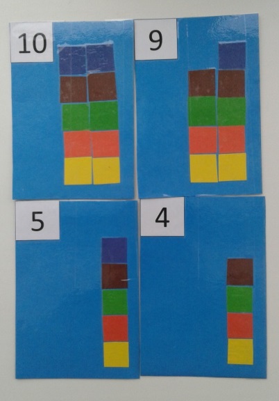 Мелкая моторика хорошо развивает память детей. Обучение детей счету несложный процесс, как иногда кажется родителям. Обучение дошкольника математике – это несложный процесс, с ним легко могут справиться родители. Создайте спокойную обстановку для занятия, приготовьте заранее интересный, красочный материал, ручки, карандаши, бумагу , чтобы во время занятия вы не отвлекались на разные мелочи. Занятия должны проходить по 30 – 40 минут в день. Если вы видите, что ребенок быстро устал, отложите занятие на следующий день. Уставший ребенок плохо будет воспринимать информацию или забудет ее совсем. Проводите занятия интересно, больше играйте с ребенком, во время игры ребенок лучше запоминает новую информацию. Посредством игр легко и непринужденно можно научить счету. «Учимся считать играя». Игра состоит из 10 карточек и 20 кубиков. На карточках изображены цифры от 1 до 10-ти. На карточке с цифрой 1 изображён один кубик, с цифрой 2 — два кубика, с цифрой 3 — три кубика и т. д. Кубики красные, жёлтые, зелёные, синие. Ход игры: