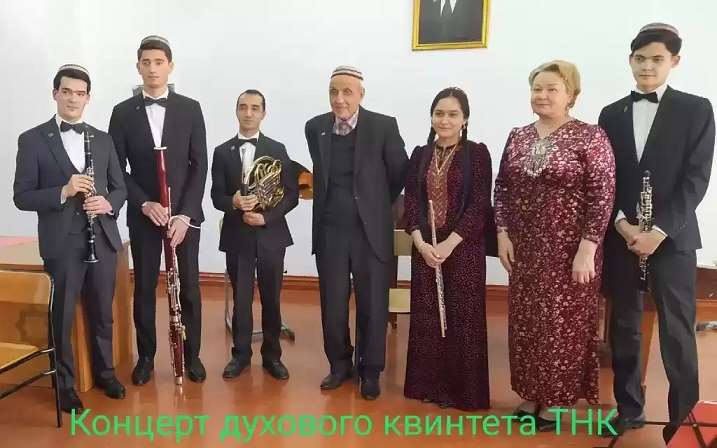 С приходом весны каждая кафедра Туркменской национальной консерватории им. Маи Кулиевой провели неделю своих мероприятий связанных с весенними праздниками. Преподаватели и студенты консерватории кафедры «Духовых и ударных инструментов» успешно провели неделю духовой музыки. Были представлены сольные ансамблевые номера, лекции и открытые уроки. Программу открыли произведением выдающегося туркменского композитора и пианиста Нуры Халмаммедова «Танец девушек» в исполнении духового квинтета кафедры в составе: Сурай Амандурдыева (флейта), Максим Аннамурадов(гобой), Хыдыр Эсенов (кларнет), старший преподаватель Вепа Аннамурадов (валторна), Бегенч Бабамурадов (фагот) и старший преподаватель Надежда Лишанкова (партия фортепиано). Н.Халмаммедов, выросший на традициях туркменского национального искусства и навсегда оставшийся верным ему, органично соединил в своём творчестве две богатейшие музыкальные культуры: европейскую и туркменскую. Музыка Халмаммедова не придумана, она идёт от сердца. Именно это задевает струны души и трогает сердца людей. В этом произведении композитор передал настроение праздника и веселья. Прихотливый Восточный ритм, своеобразная наполненная таинственностью тема, словно факир, завораживает с первой секунды. Теплый тембр валторны передаёт жизнерадостный характер. Чуть тревожно и настойчиво звучит фагот поддерживающий пунктирный ритм на протяжении всего произведения. Очень интересно прозвучала «Свирель» или «Танец пастуха». сначала звучит задумчивая мелодия флейты, внезапно очень энергично в унисон вступает весь состав квинтета, словно вихрем в танец врывается ватага озорных джигитов. На смену им выходят грациозно девушки-их характеризует медленная спокойная мелодия. Энергичный аккомпанемент имитирует подскоки и прыжки танцующих. Ассиметричный ритм и различные музыкальные приемы передают восточный колорит произведения. Ярким выступлением стал «Концерт-беседа», который провел старший преподаватель кафедры — художественный руководитель, заслуженный работник образования Туркменистана Бердынияз Реджепмедов.