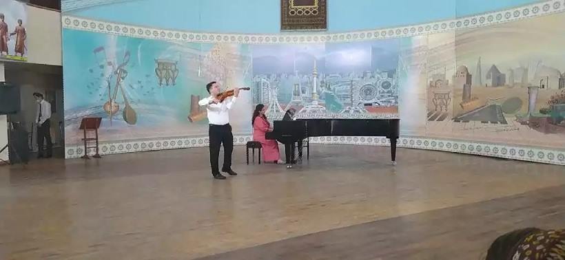 В субботу, в заключении недели скрипичной музыки, состоялся концерт в малом зале консерватории. В первом отделении выступили молодые преподаватели кафедры струнных инструментов. Бахрам Долыев (скрипка), Тахир Атаев(альт), Какагельды Ходжалеков(виолончель), Юсуп Ганымов(виолончель), лауреат международных конкурсов Айболек Мухиева. В концерте прозвучали произведения классических и русских, французских композиторов. Музыканты продемонстрировали мастерство и высокий уровень исполнительства, что не может не радовать. Партию фортепиано исполняли заслуженный артист Туркменистана Владимир Мкртумов, дипломант международных конкурсов Стелла Фарамазова и лауреат международного конкурса «Звуки дутара» им. Халмаммедова Бахар Аннадурдыева.