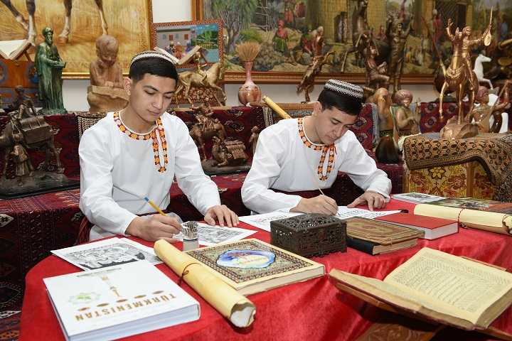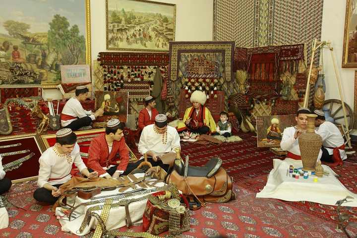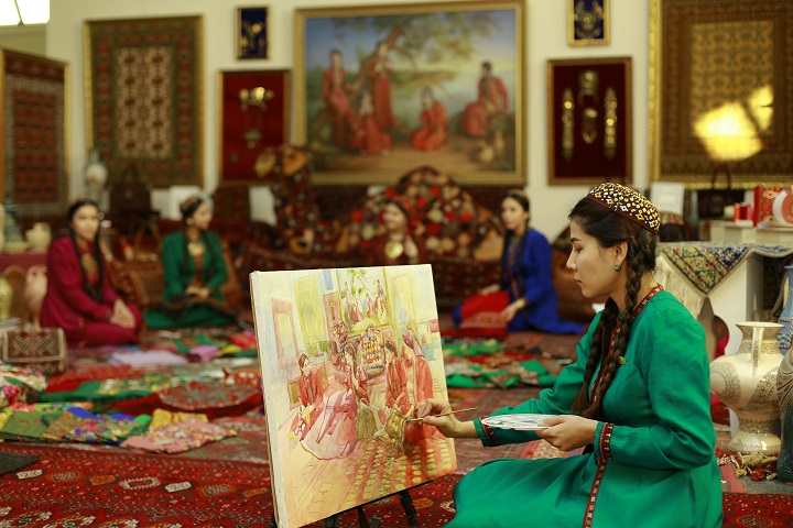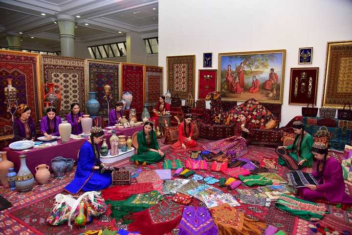 “Halkyň Arkadagly zamanasy” ýylynda Türkmenistanyň Döwlet çeperçilik akademiýasynda geçirilen “Beýik döwlet, eziz ülke, dogduk depe, asly mekan. Ählijesi seniň özüň, jan Watanym Türkmenistan!” atly dabaranyň çäginde ata-babalarymyzdan, ene-mamalarymyzdan miras galan el işleriniň asyl nusgalary, milli sungatymyzyň halyçylyk, zergärçilik, külalçylyk, demir ussaçylyk we netjarçylyk ýaly ajaýyp görnüşleri hem-de şekillendiriş sungatynyň nakgaşçylyk, grafika, heýkeltaraşlyk, binagärlik, dizaýn hünärleri boýunça döredilen işler giňden görkezildi.