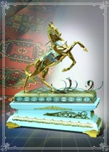 Türkmenistanyň milli nyşanlary bolan ahalteke bedewiniň çeper keşbini, her dürli täze gözlegleriň üsti bilen açyp görkezmäge çalyşýar. Häzirki zaman binagärçilik desgalarynyň şekilleri, şol sanda Garaşsyzlyk binasynyň öňünde bedewleriň gelşikli syraty sazlaşykly utgaşdyrylyp getirilýär.