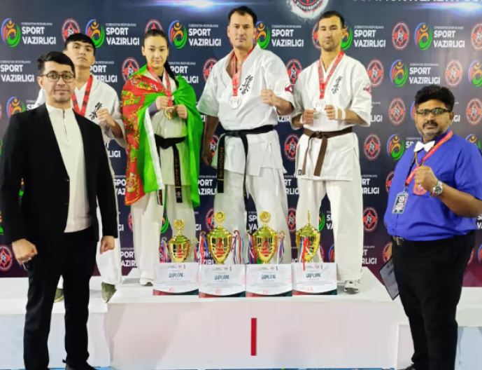 Türkmenistanyň karate boýunça milli ýygyndy topary 2025-nji ýylyň 19–21-nji dekabry aralygynda Özbegistanyň Nowaýy şäherinde geçirilen kiokuşinkaý karate boýunça «Arkalaşyk kubogy» atly halkara çempionatynda üstünlikli çykyş etdi. Bu barada Türkmenistanyň habarlar portaly habar berýär.