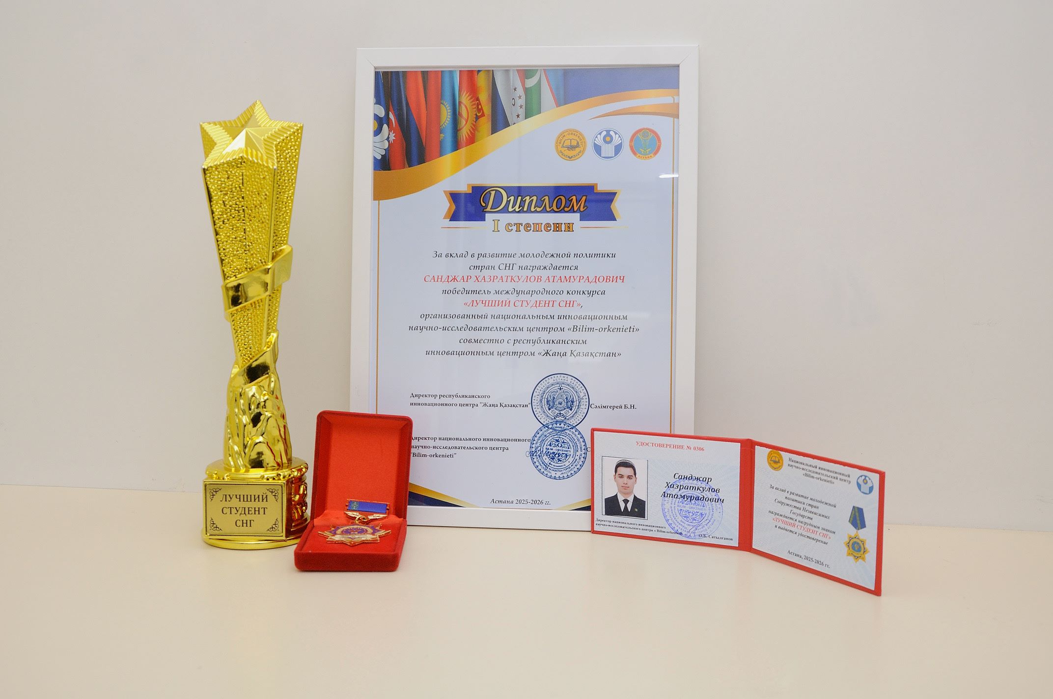 Ýakynda Türkmen döwlet ykdysadyýet we dolandyryş institutynyň Ykdysadyýet fakultetiniň ykdysadyýet we hukuk hünäriniň 2-nji ýyl talyby Sanjar Hazratkulow Gazagystan Respublikasynyň Astana şäherinde geçirilen “GDA-nyň iň gowy talyby” atly halkara bäsleşigine internet arkaly gatnaşyp, I derejeli Diploma, döşe dakylýan nyşana we kuboga mynasyp boldy.