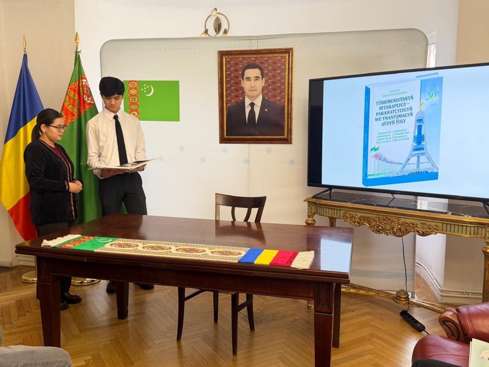 2026-njy ýylyň 7-nji ýanwarynda Türkmenistanyň Rumyniýadaky Ilçihanasynyň binasynda Türkmenistanyň Prezidenti Serdar Berdimuhamedowyň «Türkmenistanyň Bitaraplygy – Parahatçylygyň we Ynanyşmagyň aýdyň ýoly» atly täze kitabynyň tanyşdyrylyş dabarasy geçirildi.