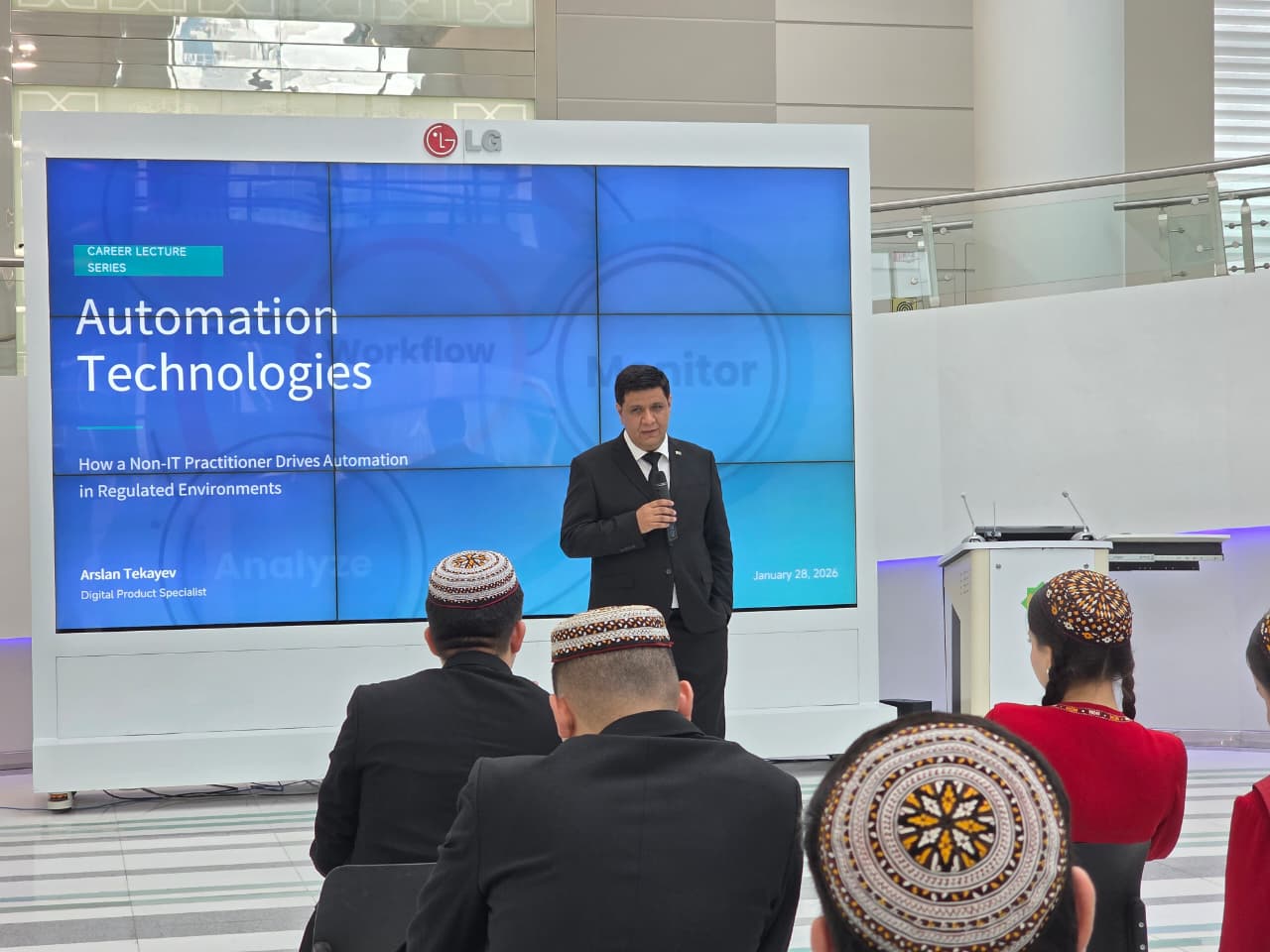 Sanly çözgütler boýunça hünärmen Arslan Tekäýew Ýagşygeldi Kakaýew adyndaky Halkara nebit we gaz uniwersitetiniň “Energetika we inženerçilik desgalary” hem-de “Ykdysadyýet we dolandyryş” fakultetlerinde “Sessiz awtomatizasiýa: netijeliligiň täze tapgyry” atly leksiýa bilen çykyş edip, awtomatizasiýanyň häzirki zaman iş dolandyryşyndaky möhüm ornuny giňişleýin düşündirdi. Çärä talyp ýaşlar we mugallymlar tarapyndan uly gyzyklanma bildirildi. Gatnaşyjylar sanly tehnologiýalaryň iş proseslerini has netijeli, takyk we çalt guramaga nähili ýardam berýändigi barada maglumat aldylar.