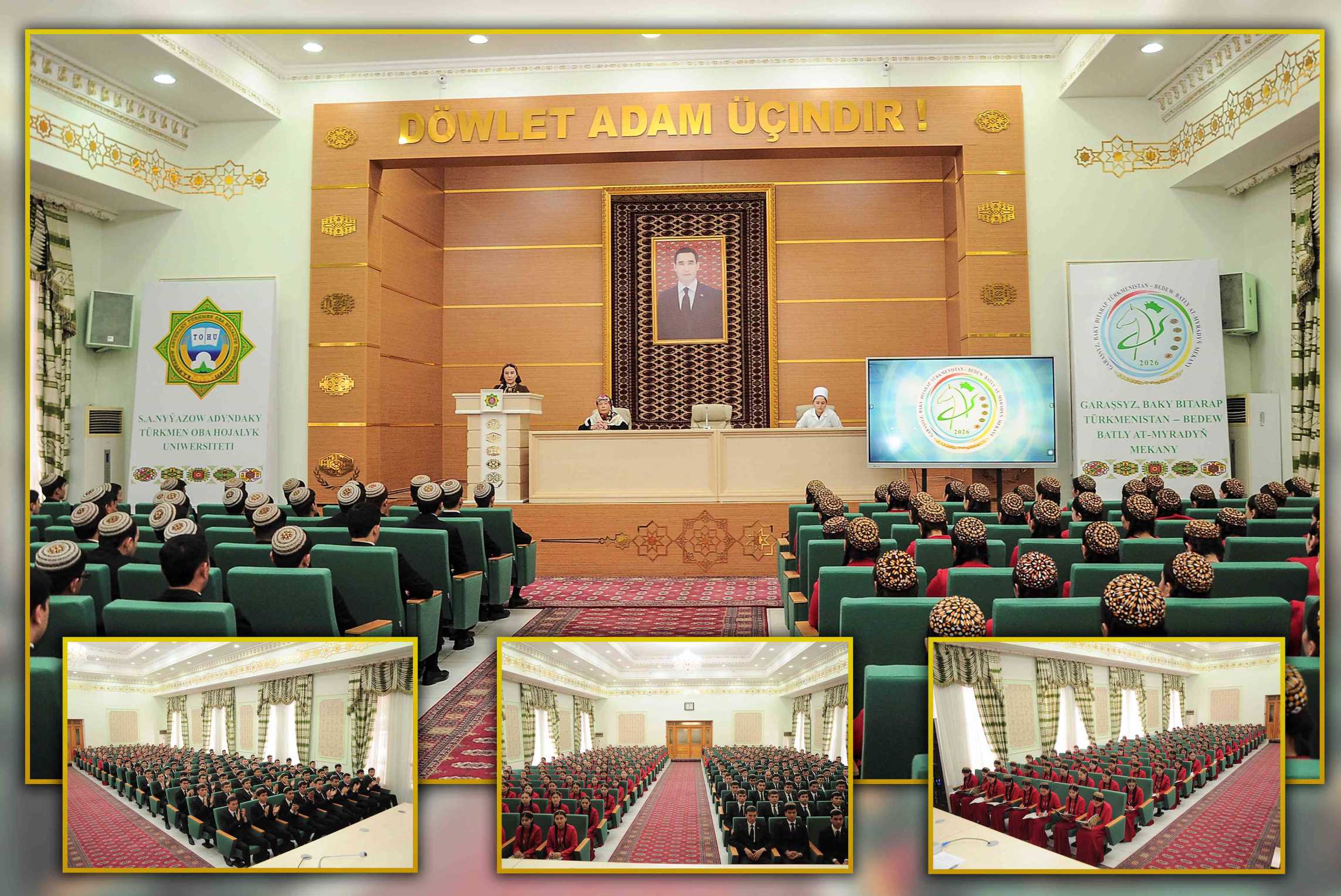 S.A.Nyýazow adyndaky Türkmen oba hojalyk uniwersitetinde geçirilýän halypaçylyk okuw sapaklarynda ýaşlaryň şahsyýet hökmünde kämilleşmegine aýratyn üns berilýär. 2026-njy ýylyň 25-nji martynda talyplaryň arasynda «Ýaşlar — Watanyň daýanjy» atly terbiýeçilik sapagy guraldy. Bu çärede ýurdumyzda alnyp barylýan döwlet syýasaty, milli däp-dessurlar, edep-terbiýe kadalary hem-de sagdyn durmuş ýörelgeleri giňişleýin düşündirildi. Çäre Aşgabat şäheriniň Talyplar saglyk öýüniň lukmanynyň gatnaşmagynda geçirildi we ony zenanlar guramasynyň ýolbaşçysy alyp bardy.
