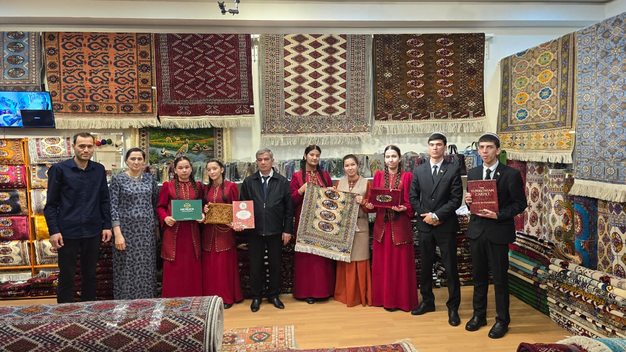 During the tour, students learned about different types of rugs, their unique designs, and the history behind each style. They also explored customer service practices, merchandising techniques, and the importance of quality and craftsmanship in promoting Turkmen cultural heritage.