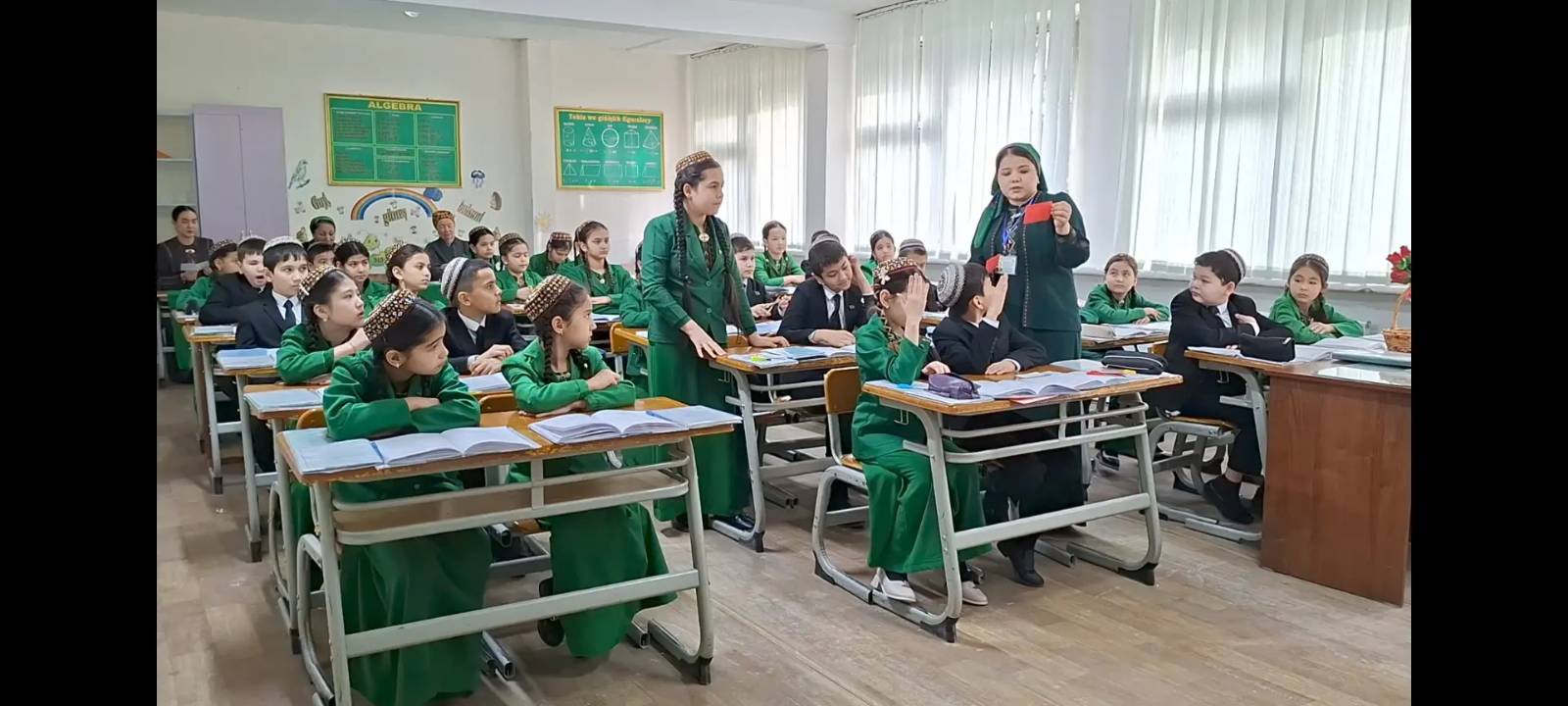 Maslahatyň dowamynda Türkmenabat şäheriniň ýöriteleşdirilen 32-nji orta mekdebiniň matematika mugallymy Öwezowa Akjagül Beşimowna 2026-njy ýylyň 4-nji martynda 5-nji “Ç” synpda “Dürli maýdalawjyly droblary goşmak we aýyrmak” diýen tema boýunça göreldeli sapak geçirdi.