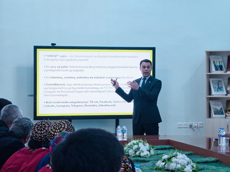S.A. Nyýazow adyndaky Türkmen oba hojalyk uniwersitetinde talyp ýaşlaryň we mugallymlaryň gatnaşmagynda häzirki zaman žurnalistikasy, ykdysady ugurlarda onuň ähmiýeti hem-de media sowatlylygy boýunça açyk sapak geçirildi.